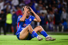 Ciudad de México, 24 de septiembre de 2025. José Paradela en lamento, durante el partido correspondiente a la jornada 10 del torneo Apertura 2025 de la Liga BBVA MX, entre la Máquina Celeste del Cruz Azul y los Gallos Blancos del Querétaro, realizado en el estadio Olímpico Universitario. Foto: Imago7/ Manlio Contreras