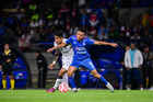 Ciudad de México, 24 de septiembre de 2025. Gonzalo Piovi, durante el partido correspondiente a la jornada 10 del torneo Apertura 2025 de la Liga BBVA MX, entre la Máquina Celeste del Cruz Azul y los Gallos Blancos del Querétaro, realizado en el estadio Olímpico Universitario. Foto: Imago7/ Alexis Chavez