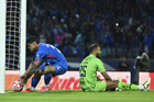 Ciudad de México, 24 de septiembre de 2025. Gabriel Fernández anota gol, durante el partido correspondiente a la jornada 10 del torneo Apertura 2025 de la Liga BBVA MX, entre la Máquina Celeste del Cruz Azul y los Gallos Blancos del Querétaro, realizado en el estadio Olímpico Universitario. Foto: Imago7/Etzel Espinosa