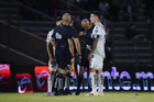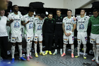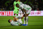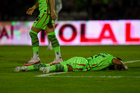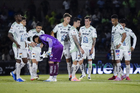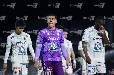 Ciudad Juárez, Chihuahua, 26 de septiembre de 2025. Jugadores de León en lamento, durante el partido correspondiente a la jornada 11 del torneo Apertura 2025 de la Liga BBVA MX, entre los Bravos de FC Juárez y los Esmeraldas del León, realizado en el estadio Olímpico Benito Juárez. Foto: Imago7/ Sebastian Laureano Miranda