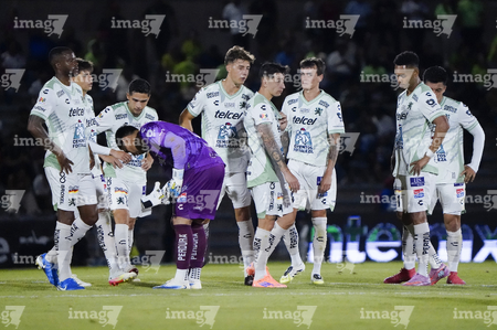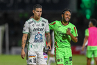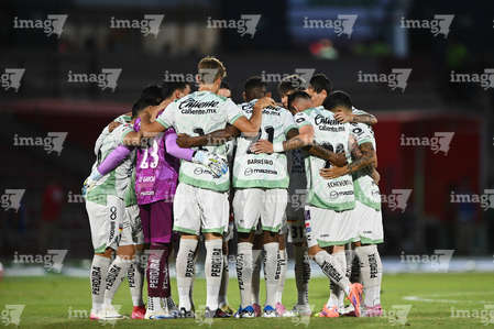 Ciudad Juárez, Chihuahua, 26 de septiembre de 2025. Jugadores de León, durante el partido correspondiente a la jornada 11 del torneo Apertura 2025 de la Liga BBVA MX, entre los Bravos de FC Juárez y los Esmeraldas del León, realizado en realizado en el estadio Olímpico Benito Juárez. Foto: Imago7/ José Zamora