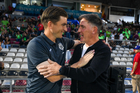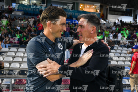 Ciudad Juárez, Chihuahua, 26 de septiembre de 2025. Martín Varini y Eduardo Berizzo, durante el partido correspondiente a la jornada 11 del torneo Apertura 2025 de la Liga BBVA MX, entre los Bravos de FC Juárez y los Esmeraldas del León, realizado en realizado en el estadio Olímpico Benito Juárez. Foto: Imago7/Alejandro Rodríguez