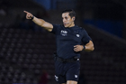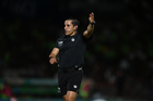 Ciudad Juárez, Chihuahua, 26 de septiembre de 2025. Mario Terrazas , árbitro central, durante el partido correspondiente a la jornada 11 del torneo Apertura 2025 de la Liga BBVA MX, entre los Bravos de FC Juárez y los Esmeraldas del León, realizado en realizado en el estadio Olímpico Benito Juárez. Foto: Imago7/ José Zamora