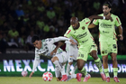 Ciudad Juárez, Chihuahua, 26 de septiembre de 2025. Jugadores de León, durante el partido correspondiente a la jornada 11 del torneo Apertura 2025 de la Liga BBVA MX, entre los Bravos de FC Juárez y los Esmeraldas del León, realizado en el estadio Olímpico Benito Juárez. Foto: Imago7/ Sebastian Laureano Miranda