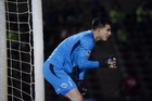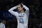 Ciudad Juárez, Chihuahua, 26 de septiembre de 2025. Jordi Cortizo en lamento, durante el partido correspondiente a la jornada 11 del torneo Apertura 2025 de la Liga BBVA MX, entre los Bravos de FC Juárez y los Esmeraldas del León, realizado en el estadio Olímpico Benito Juárez. Foto: Imago7/ Sebastian Laureano Miranda