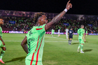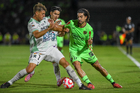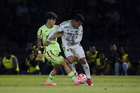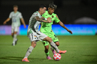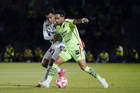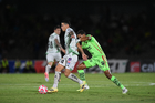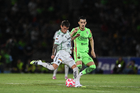 Ciudad Juárez, Chihuahua, 26 de septiembre de 2025. Nicolás Fonseca, durante el partido correspondiente a la jornada 11 del torneo Apertura 2025 de la Liga BBVA MX, entre los Bravos de FC Juárez y los Esmeraldas del León, realizado en el estadio Olímpico Benito Juárez. Foto: Imago7/ Sebastian Laureano Miranda