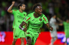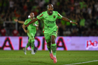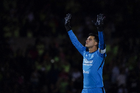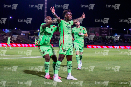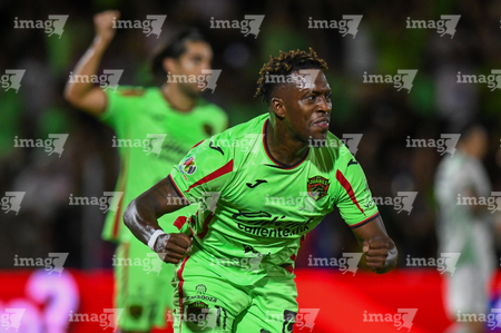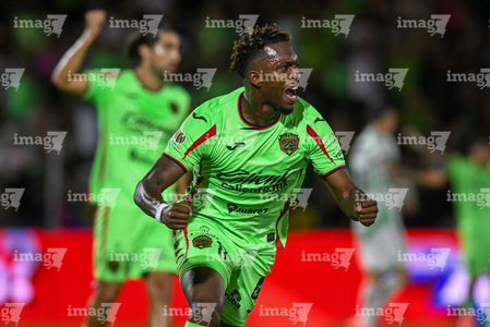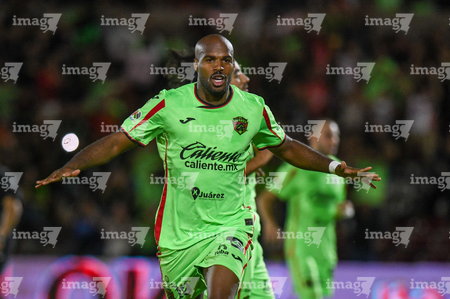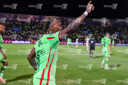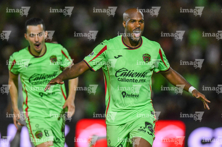 Ciudad Juárez, Chihuahua, 26 de septiembre de 2025. Oscar Estupiñán en festejo de gol, durante el partido correspondiente a la jornada 11 del torneo Apertura 2025 de la Liga BBVA MX, entre los Bravos de FC Juárez y los Esmeraldas del León, realizado en realizado en el estadio Olímpico Benito Juárez. Foto: Imago7/Alejandro Rodríguez