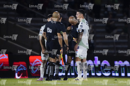 Ciudad Juárez, Chihuahua, 26 de septiembre de 2025. Alfonso Blanco en reclamo a Mario Terrazas Chávez, árbitro central, durante el partido correspondiente a la jornada 11 del torneo Apertura 2025 de la Liga BBVA MX, entre los Bravos de FC Juárez y los Esmeraldas del León, realizado en el estadio Olímpico Benito Juárez. Foto: Imago7/ Sebastian Laureano Miranda