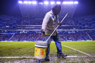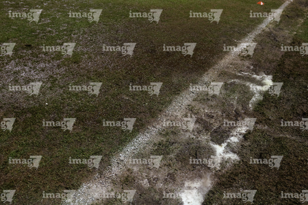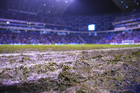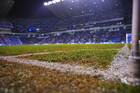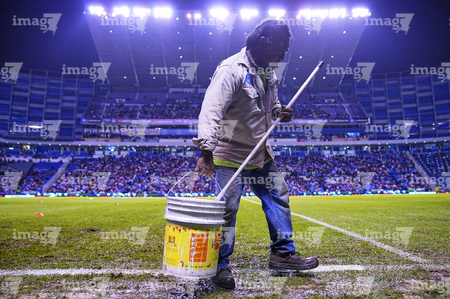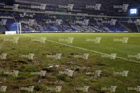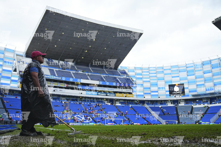 Puebla, Puebla, 26 de septiembre de 2025. Cancha inundada, durante el partido correspondiente a la jornada 11 del torneo Apertura 2025 de la Liga BBVA MX, entre el Club Puebla y las Chivas Rayadas del Guadalajara, realizado en el estadio Cuauhtémoc. Foto: Imago7/Mireya Novo
