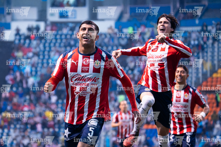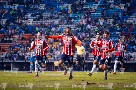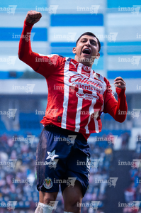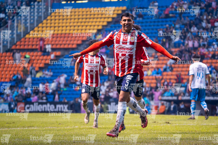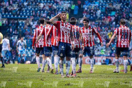 Puebla, Puebla, 27 de septiembre de 2025. Raul Rangel en festejo , durante el partido correspondiente a la jornada 11 del torneo Apertura 2025 de la Liga BBVA MX, entre el Club Puebla y las Chivas Rayadas del Guadalajara, realizado en el estadio Cuauhtémoc. Foto: Imago7/Manlio Contreras