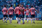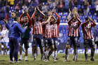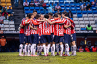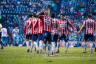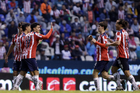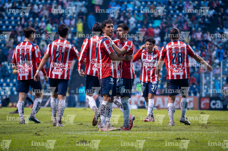 Puebla, Puebla, 27 de septiembre de 2025. Jugadores de Chivas en festejo, durante el partido correspondiente a la jornada 11 del torneo Apertura 2025 de la Liga BBVA MX, entre el Club Puebla y las Chivas Rayadas del Guadalajara, realizado en el estadio Cuauhtémoc. Foto: Imago7/Mireya Novo