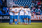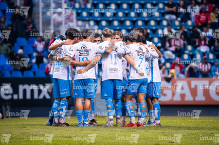 Puebla, Puebla, 27 de septiembre de 2025. Jugadores del Club Puebla, durante el partido correspondiente a la jornada 11 del torneo Apertura 2025 de la Liga BBVA MX, entre el Club Puebla y las Chivas Rayadas del Guadalajara, realizado en el estadio Cuauhtémoc. Foto: Imago7/Diego Padilla