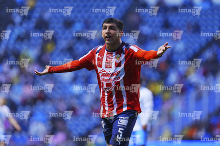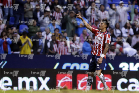 Puebla, Puebla, 26 de septiembre de 2025. Esteban Lozano, durante el partido correspondiente a la jornada 11 del torneo Apertura 2025 de la Liga BBVA MX, entre el Club Puebla y las Chivas Rayadas del Guadalajara, realizado en el estadio Cuauhtémoc. Foto: Imago7/Mireya Novo