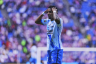 Puebla, Puebla, 27 de septiembre de 2025. Edgar Guerra en lamento, durante el partido correspondiente a la jornada 11 del torneo Apertura 2025 de la Liga BBVA MX, entre el Club Puebla y las Chivas Rayadas del Guadalajara, realizado en el estadio Cuauhtémoc. Foto: Imago7/Manlio Contreras