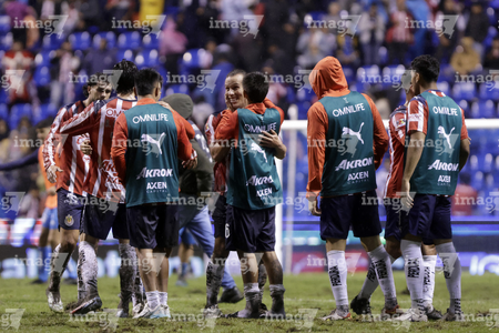 Puebla, Puebla, 27 de septiembre de 2025. Jugadores de Chivas, durante el partido correspondiente a la jornada 11 del torneo Apertura 2025 de la Liga BBVA MX, entre el Club Puebla y las Chivas Rayadas del Guadalajara, realizado en el estadio Cuauhtémoc. Foto: Imago7/Diego Padilla