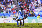 Puebla, Puebla, 27 de septiembre de 2025. Owen González y Efraín Álvarez, durante el partido correspondiente a la jornada 11 del torneo Apertura 2025 de la Liga BBVA MX, entre el Club Puebla y las Chivas Rayadas del Guadalajara, realizado en el estadio Cuauhtémoc. Foto: Imago7/Mireya Novo