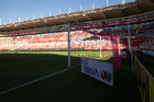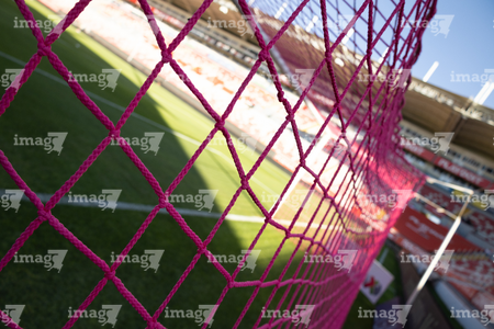 Aguascalientes, Aguascalientes, 21 de octubre de 2025. Red de porteria de la Campaña Rosa para la concientización del Cáncer de Mama, durante el partido correspondiente a la jornada 14 del torneo Apertura 2025 de la Liga BBVA MX, entre los Rayos del Necaxa y la Máquina Celeste del Cruz Azul, realizado en el estadio Victoria. Foto: Imago7/ Pablo Ramírez