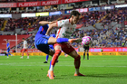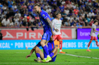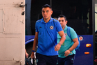 Aguascalientes, Aguascalientes, 21 de octubre de 2025. Gonzalo Piovi resultó lesionado, durante el partido correspondiente a la jornada 14 del torneo Apertura 2025 de la Liga BBVA MX, entre los Rayos del Necaxa y la Máquina Celeste del Cruz Azul, realizado en el estadio Victoria. Foto: Imago7/ Rogelio Davila