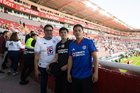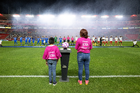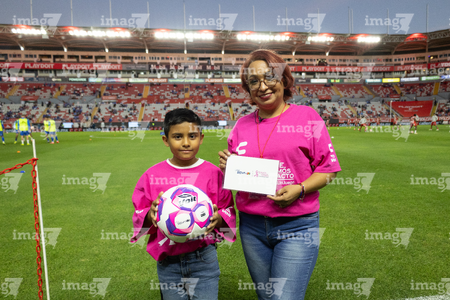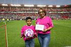 Aguascalientes, Aguascalientes, 21 de octubre de 2025. Embajadores de la Campaña Rosa para la concientización del Cáncer de Mama, durante el partido correspondiente a la jornada 14 del torneo Apertura 2025 de la Liga BBVA MX, entre los Rayos del Necaxa y la Máquina Celeste del Cruz Azul, realizado en el estadio Victoria. Foto: Imago7/ Pablo Ramírez