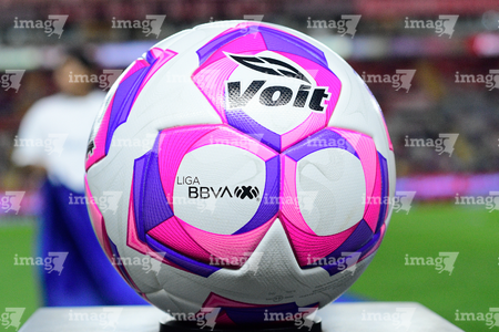 Aguascalientes, Aguascalientes, 21 de octubre de 2025. Balón de futbol Voit Aereus de la Campaña Rosa para la concientización del Cáncer de Mama, durante el partido correspondiente a la jornada 14 del torneo Apertura 2025 de la Liga BBVA MX, entre los Rayos del Necaxa y la Máquina Celeste del Cruz Azul, realizado en el estadio Victoria. Foto: Imago7/ Pablo Ramírez