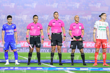 Aguascalientes, Aguascalientes, 21 de octubre de 2025. Protocolo, durante el partido correspondiente a la jornada 14 del torneo Apertura 2025 de la Liga BBVA MX, entre los Rayos del Necaxa y la Máquina Celeste del Cruz Azul, realizado en el estadio Victoria. Foto: Imago7/ Rogelio Davila