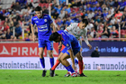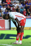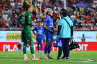 Aguascalientes, Aguascalientes, 21 de octubre de 2025. Diber Cambindo en lamento, durante el partido correspondiente a la jornada 14 del torneo Apertura 2025 de la Liga BBVA MX, entre los Rayos del Necaxa y la Máquina Celeste del Cruz Azul, realizado en el estadio Victoria. Foto: Imago7/ Rogelio Davila