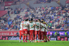 Aguascalientes, Aguascalientes, 21 de octubre de 2025. Jugadores del Necaxa, durante el partido correspondiente a la jornada 14 del torneo Apertura 2025 de la Liga BBVA MX, entre los Rayos del Necaxa y la Máquina Celeste del Cruz Azul, realizado en el estadio Victoria. Foto: Imago7/ Pablo Ramírez