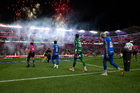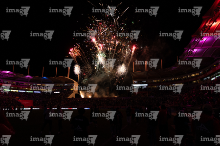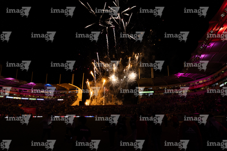 Aguascalientes, Aguascalientes, 21 de octubre de 2025. Fuegos artificiales, durante el partido correspondiente a la jornada 14 del torneo Apertura 2025 de la Liga BBVA MX, entre los Rayos del Necaxa y la Máquina Celeste del Cruz Azul, realizado en el estadio Victoria. Foto: Imago7/ Pablo Ramírez