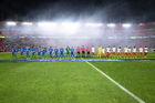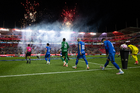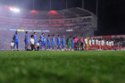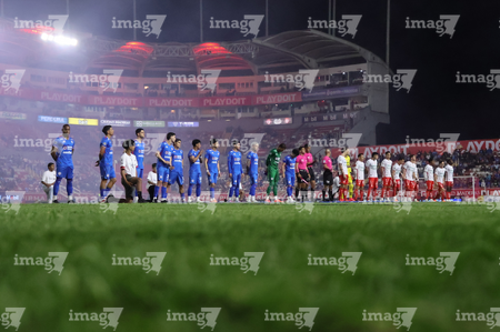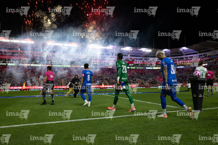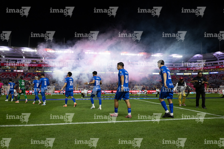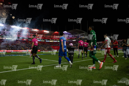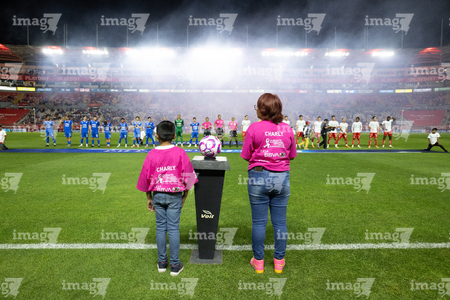 Aguascalientes, Aguascalientes, 21 de octubre de 2025. Protocolo, durante el partido correspondiente a la jornada 14 del torneo Apertura 2025 de la Liga BBVA MX, entre los Rayos del Necaxa y la Máquina Celeste del Cruz Azul, realizado en el estadio Victoria. Foto: Imago7/ Pablo Ramírez