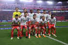 Aguascalientes, Aguascalientes, 21 de octubre de 2025. Foto de equipo del Necaxa, durante el partido correspondiente a la jornada 14 del torneo Apertura 2025 de la Liga BBVA MX, entre los Rayos del Necaxa y la Máquina Celeste del Cruz Azul, realizado en el estadio Victoria. Foto: Imago7/ Rogelio Davila