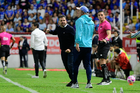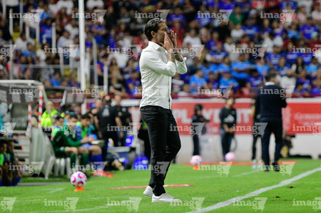 Aguascalientes, Aguascalientes, 21 de octubre de 2025. Nicolás Larcamón, durante el partido correspondiente a la jornada 14 del torneo Apertura 2025 de la Liga BBVA MX, entre los Rayos del Necaxa y la Máquina Celeste del Cruz Azul, realizado en el estadio Victoria. Foto: Imago7/ Pablo Ramírez