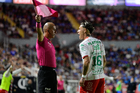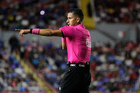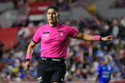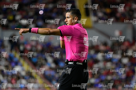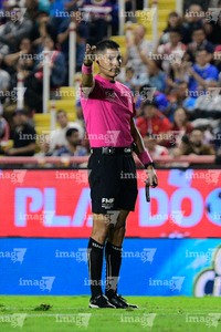 Aguascalientes, Aguascalientes, 21 de octubre de 2025. Vicente Jassiel Reynoso, árbitro central, durante el partido correspondiente a la jornada 14 del torneo Apertura 2025 de la Liga BBVA MX, entre los Rayos del Necaxa y la Máquina Celeste del Cruz Azul, realizado en el estadio Victoria. Foto: Imago7/ Pablo Ramírez