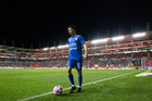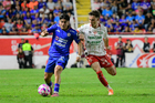 Aguascalientes, Aguascalientes, 21 de octubre de 2025. Jeremy Marquez, durante el partido correspondiente a la jornada 14 del torneo Apertura 2025 de la Liga BBVA MX, entre los Rayos del Necaxa y la Máquina Celeste del Cruz Azul, realizado en el estadio Victoria. Foto: Imago7/ Pablo Ramírez