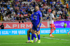 Aguascalientes, Aguascalientes, 21 de octubre de 2025. Angel Sepulveda en lamento, durante el partido correspondiente a la jornada 14 del torneo Apertura 2025 de la Liga BBVA MX, entre los Rayos del Necaxa y la Máquina Celeste del Cruz Azul, realizado en el estadio Victoria. Foto: Imago7/ Pablo Ramírez