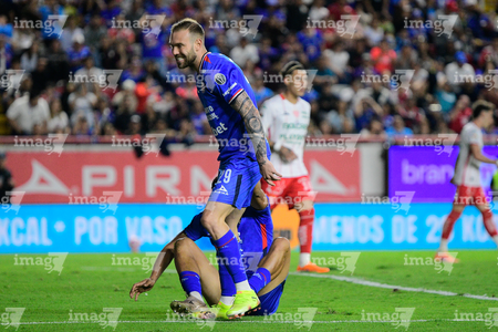 Aguascalientes, Aguascalientes, 21 de octubre de 2025. José Ignacio Rivero en festejo de gol anulado, durante el partido correspondiente a la jornada 14 del torneo Apertura 2025 de la Liga BBVA MX, entre los Rayos del Necaxa y la Máquina Celeste del Cruz Azul, realizado en el estadio Victoria. Foto: Imago7/ Pablo Ramírez