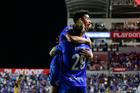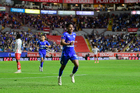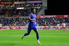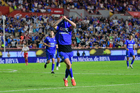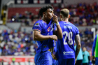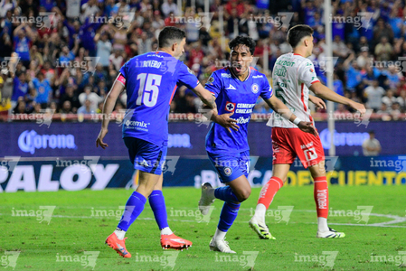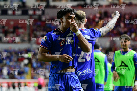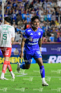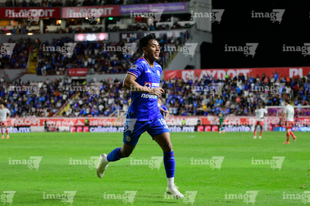 Aguascalientes, Aguascalientes, 21 de octubre de 2025. Amaury Morales en festejo de gol, durante el partido correspondiente a la jornada 14 del torneo Apertura 2025 de la Liga BBVA MX, entre los Rayos del Necaxa y la Máquina Celeste del Cruz Azul, realizado en el estadio Victoria. Foto: Imago7/ Pablo Ramírez