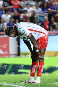 Aguascalientes, Aguascalientes, 21 de octubre de 2025. Kevin Ante, durante el partido correspondiente a la jornada 14 del torneo Apertura 2025 de la Liga BBVA MX, entre los Rayos del Necaxa y la Máquina Celeste del Cruz Azul, realizado en el estadio Victoria. Foto: Imago7/ Pablo Ramírez