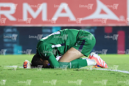 Aguascalientes, Aguascalientes, 21 de octubre de 2025. Kevin Mier en lamento, durante el partido correspondiente a la jornada 14 del torneo Apertura 2025 de la Liga BBVA MX, entre los Rayos del Necaxa y la Máquina Celeste del Cruz Azul, realizado en el estadio Victoria. Foto: Imago7/ Rogelio Davila
