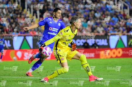 Aguascalientes, Aguascalientes, 21 de octubre de 2025. Kevin Mier, durante el partido correspondiente a la jornada 14 del torneo Apertura 2025 de la Liga BBVA MX, entre los Rayos del Necaxa y la Máquina Celeste del Cruz Azul, realizado en el estadio Victoria. Foto: Imago7/ Pablo Ramírez