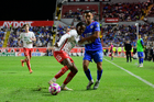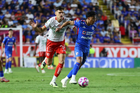 Aguascalientes, Aguascalientes, 21 de octubre de 2025. Carlos Rodríguez, durante el partido correspondiente a la jornada 14 del torneo Apertura 2025 de la Liga BBVA MX, entre los Rayos del Necaxa y la Máquina Celeste del Cruz Azul, realizado en el estadio Victoria. Foto: Imago7/ Pablo Ramírez