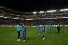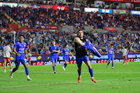 Aguascalientes, Aguascalientes, 21 de octubre de 2025. Jugadores del Cruz Azul en lamento, durante el partido correspondiente a la jornada 14 del torneo Apertura 2025 de la Liga BBVA MX, entre los Rayos del Necaxa y la Máquina Celeste del Cruz Azul, realizado en el estadio Victoria. Foto: Imago7/ Pablo Ramírez