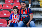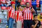 Querétaro, Querétaro, 22 de octubre de 2025. Afición, durante el partido correspondiente a la jornada 14 del torneo Apertura 2025 de la Liga BBVA MX, entre los Gallos Blancos del Querétaro y las Chivas Rayadas del Guadalajara, realizado en el estadio La Corregidora. Foto: Imago7/ Hugo Martinez