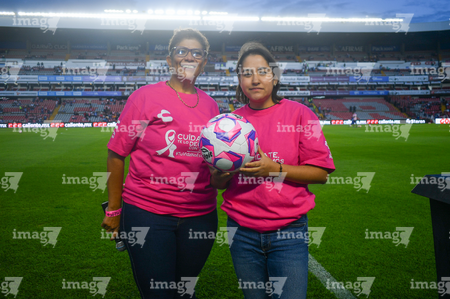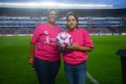 Querétaro, Querétaro, 22 de octubre de 2025. Embajadoras de la Campaña Rosa para la concientización del Cáncer de Mama, durante el partido correspondiente a la jornada 14 del torneo Apertura 2025 de la Liga BBVA MX, entre los Gallos Blancos del Querétaro y las Chivas Rayadas del Guadalajara, realizado en el estadio La Corregidora. Foto: Imago7/