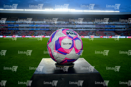 Querétaro, Querétaro, 22 de octubre de 2025. Balón de futbol Voit Aereus de la Campaña Rosa para la concientización del Cáncer de Mama, durante el partido correspondiente a la jornada 14 del torneo Apertura 2025 de la Liga BBVA MX, entre los Gallos Blancos del Querétaro y las Chivas Rayadas del Guadalajara, realizado en el estadio La Corregidora. Foto: Imago7/