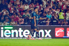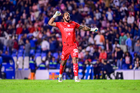 Querétaro, Querétaro, 22 de octubre de 2025. Ali Avila en festejo de gol, durante el partido correspondiente a la jornada 14 del torneo Apertura 2025 de la Liga BBVA MX, entre los Gallos Blancos del Querétaro y las Chivas Rayadas del Guadalajara, realizado en el estadio La Corregidora. Foto: Imago7/ Hugo Martinez