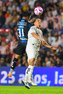 Querétaro, Querétaro, 22 de octubre de 2025. Cade Cowell y Carlos Villanueva, durante el partido correspondiente a la jornada 14 del torneo Apertura 2025 de la Liga BBVA MX, entre los Gallos Blancos del Querétaro y las Chivas Rayadas del Guadalajara, realizado en el estadio La Corregidora. Foto: Imago7/ Hugo Martinez