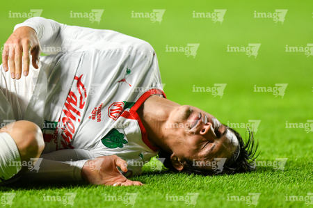 Querétaro, Querétaro, 22 de octubre de 2025. Santiago Sandoval resultó lesionado, durante el partido correspondiente a la jornada 14 del torneo Apertura 2025 de la Liga BBVA MX, entre los Gallos Blancos del Querétaro y las Chivas Rayadas del Guadalajara, realizado en el estadio La Corregidora. Foto: Imago7/