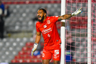Querétaro, Querétaro, 22 de octubre de 2025. Portigoles , durante el partido correspondiente a la jornada 14 del torneo Apertura 2025 de la Liga BBVA MX, entre los Gallos Blancos del Querétaro y las Chivas Rayadas del Guadalajara, realizado en el estadio La Corregidora. Foto: Imago7/ Hugo Martinez