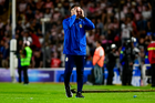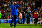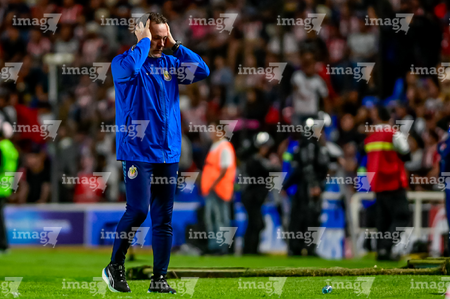 Querétaro, Querétaro, 22 de octubre de 2025. Gabriel Milito, director técnico en lamento, durante el partido correspondiente a la jornada 14 del torneo Apertura 2025 de la Liga BBVA MX, entre los Gallos Blancos del Querétaro y las Chivas Rayadas del Guadalajara, realizado en el estadio La Corregidora. Foto: Imago7/ Hugo Martinez