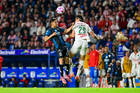 Querétaro, Querétaro, 22 de octubre de 2025. Guillermo Allison y Armando González, durante el partido correspondiente a la jornada 14 del torneo Apertura 2025 de la Liga BBVA MX, entre los Gallos Blancos del Querétaro y las Chivas Rayadas del Guadalajara, realizado en el estadio La Corregidora. Foto: Imago7/